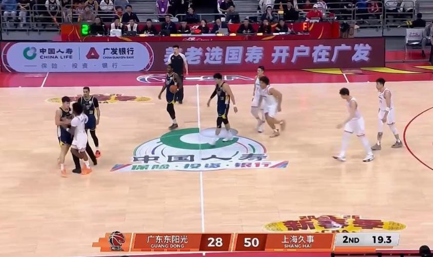 由于不满抢篮板时被张皓嘉放倒,古德温起身后直接撞倒了张皓嘉,险些引发两队冲突。