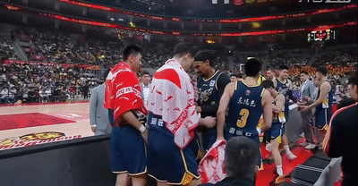 比赛第二节初段,萨林杰在一次中投不进后的回防过程中,疑似出现了伤情,萨林杰蹲在底线附近,不断向场边教练组比划要换人的手势。